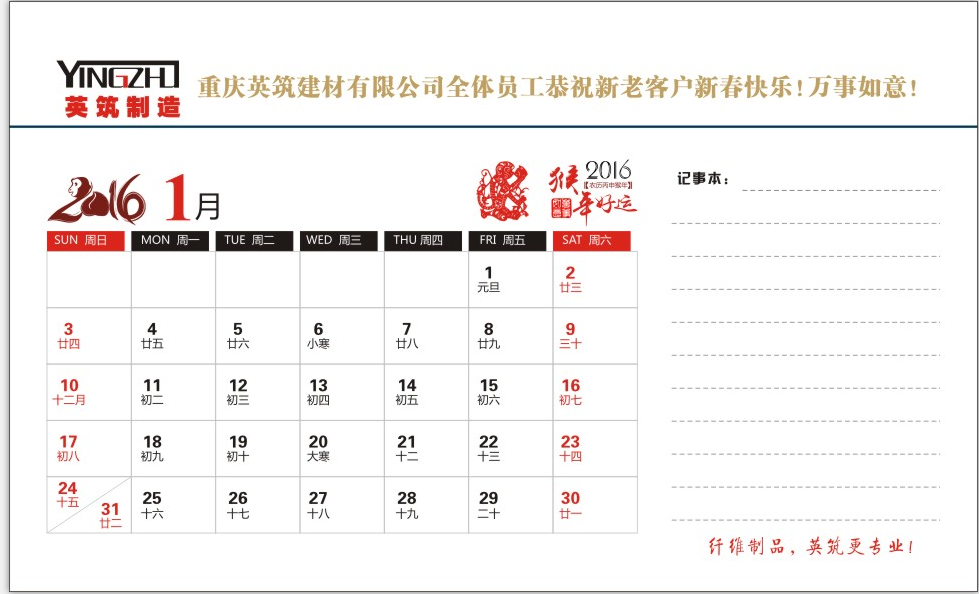 重慶英筑公司定制的2016年新年臺(tái)歷