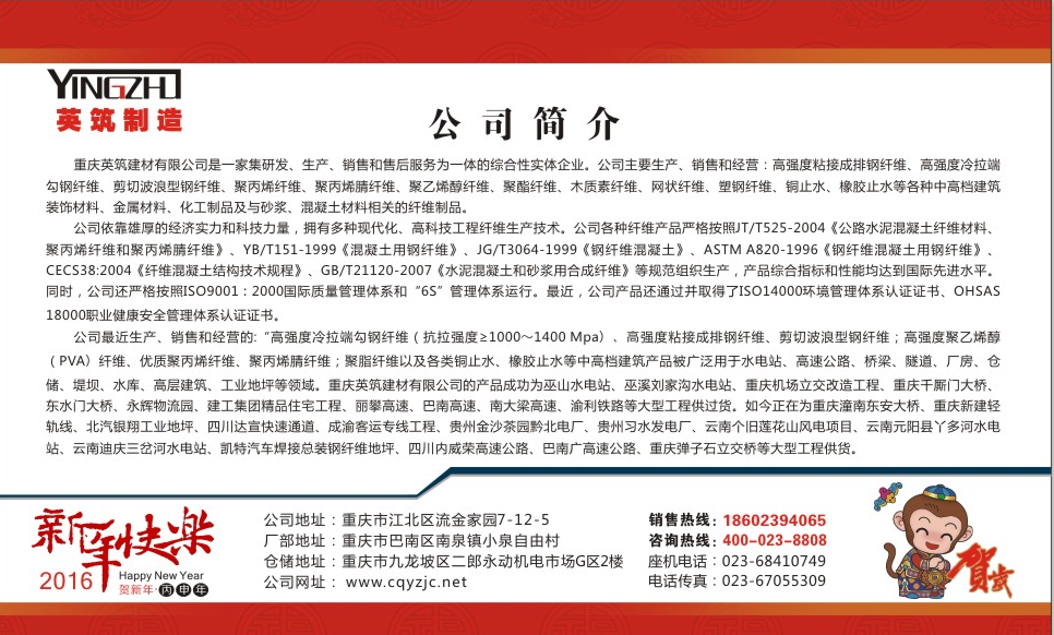 2016年度新春佳節(jié)即將到來之際,為了回饋和感恩廣大新老客戶一直以來對(duì)重慶英筑建材有限公司的幫助、支持、信任與選擇,