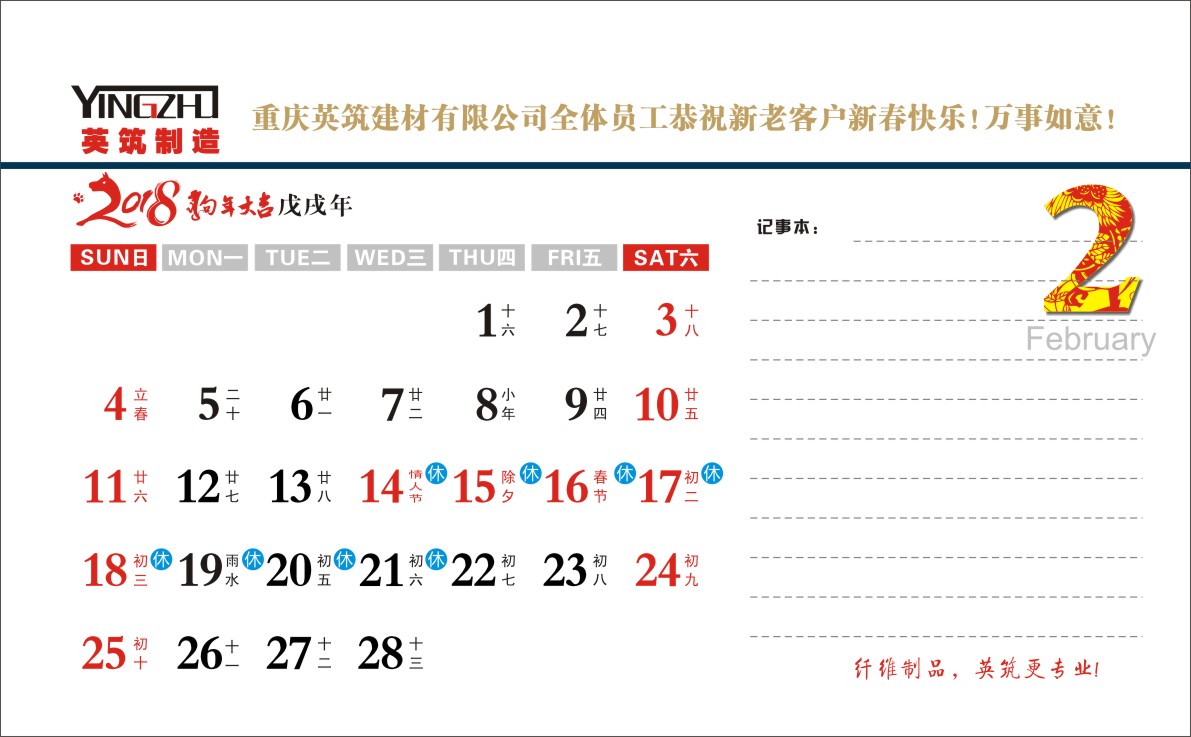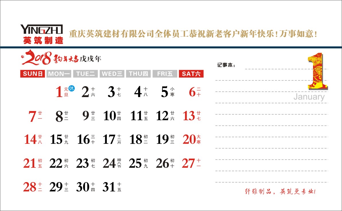 重慶英筑公司定制的2018年新年臺(tái)歷
