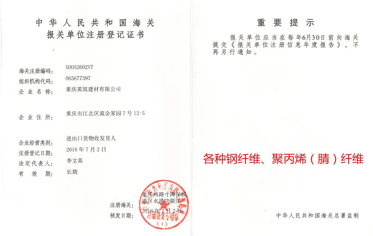 重慶英筑公司順利取得海關(guān)報(bào)關(guān)單位注冊登記證書
